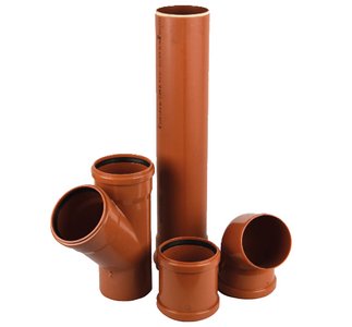KG Rohre/Kanalgrundrohr und Formstücke in der Farbe orange-braun werden für die Grundstücksentwässerung und für die kommunale Entwässerung genutzt.